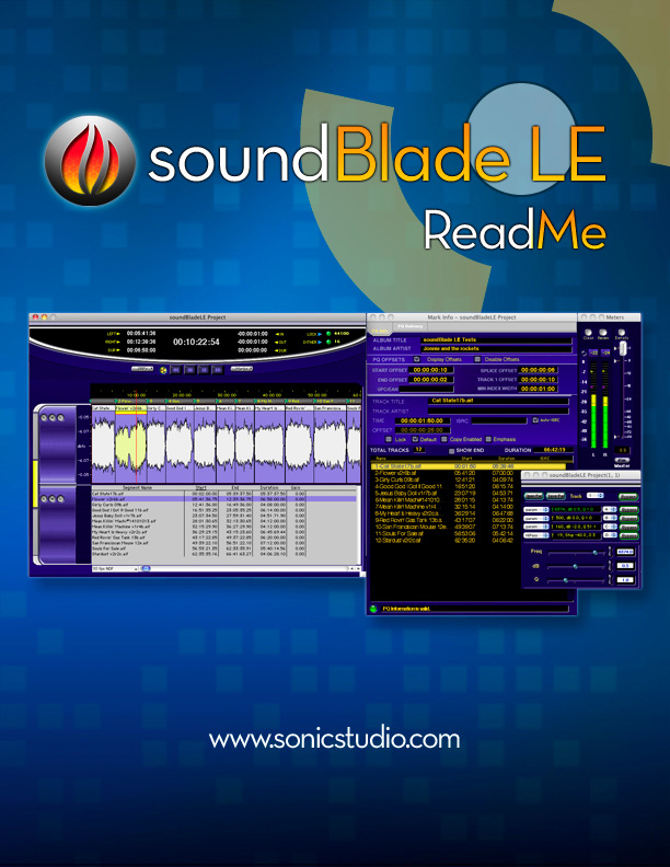 Thank you for your purchase of soundBlade LE. This file contains important information about the installation and operation of your application. The User Manual, a more complete version of this document, is available in the application’s Documentation folder.